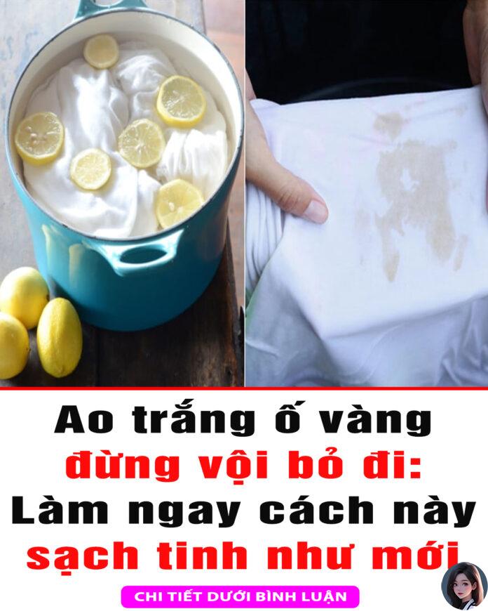 Nếu như áo trắng của bạn bị ố vàng bạn có thể dùng nước cốt chanh để tẩy chúng. Bạn hãy cắt nửa quả chanh vắt lấy nước, sau đó thoa nước cốt chanh lên vùng áo bị ố vàng và đợi khoảng 20 phút. Đồng thời, chất axit trong nước chanh có tác dụng tẩy vết ố vàng trên quần áo một cách hiệu quả.