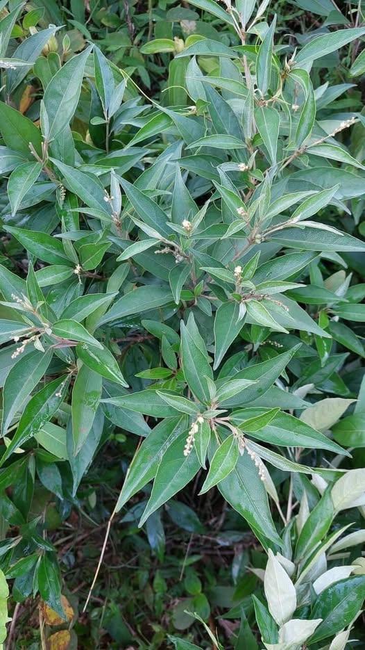 Cây nhỏ, cao 1 – 2m. Cành non mảnh. Lá mọc so le hoặc gần như mọc đối, có khi tụ họp nhiều là kiểu mọc vòng, hình mũi mác, gốc hới từ, đầu thuôn nhọn, dài 5 – 9cm, rộng 1 – 3cm, hai mặt có lông hình khiên, óng ánh như lá nhót, dày hơn ở mặt dưới, 3 gân chính toả từ gốc lá cùng với 2 tuyến dạng răng nhỏ, cuống lá cũng có lông hình khiên.